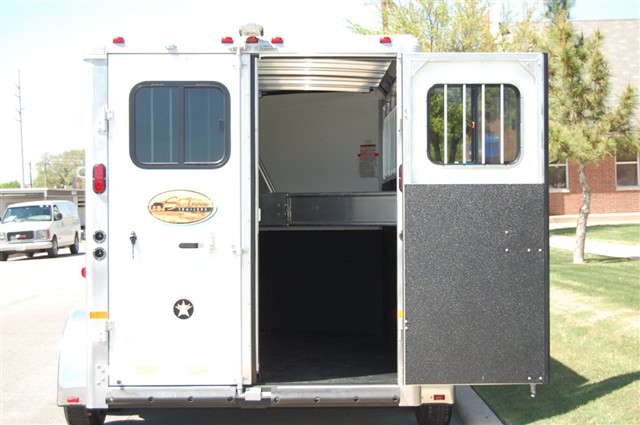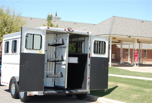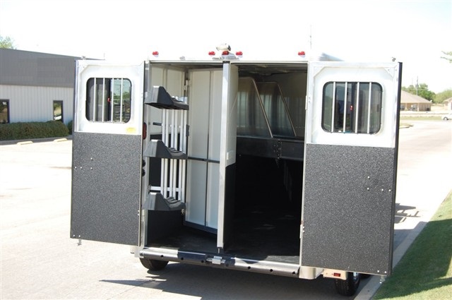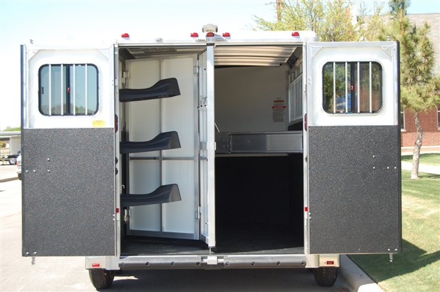 collapsible rear tack room with a swing out saddle rack