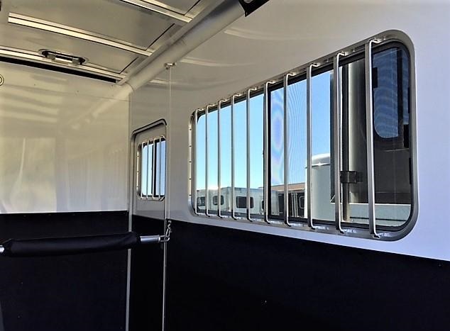 Large sliding windows w/bars on the hips of each horse